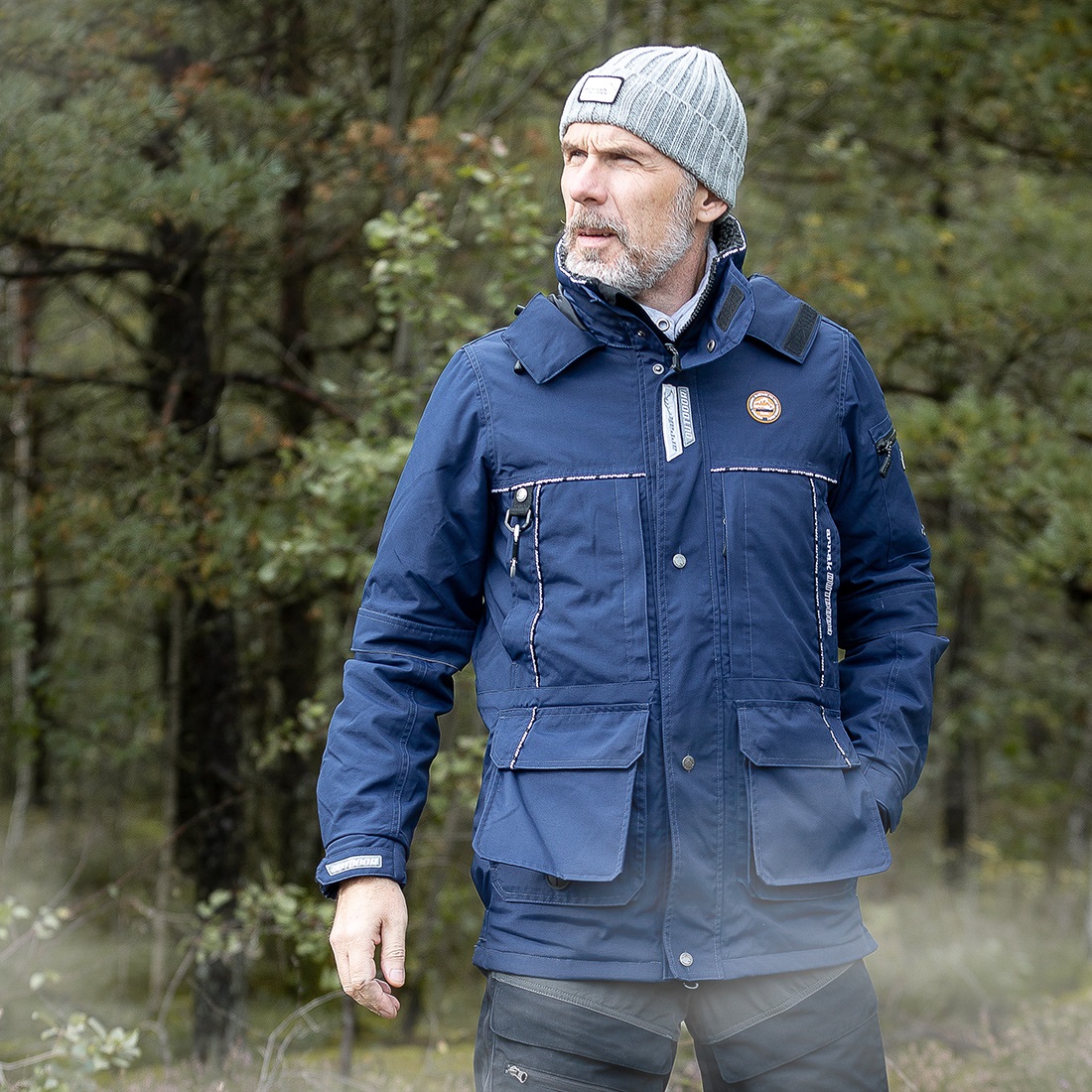- 4 Brusttaschen, davon 2 mit Reißverschluß und 2 mit Microfleece gefüttert zum Händewärmen
