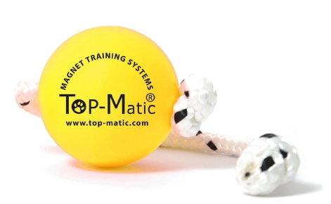 TOP Matic ist für uns das perfekte Hilfsmittel, um Hunde punktgenau und ohne jede Körperhilfe zu bestätigen. Magnetball aus Kunststoff mit Schnur für die Anwendung mit Top-Matic MAXI Power-Clip. Durchmesser 5.8 cm, Ausführung SOFT, Farbe gelb. Besonders geeignet für kleinere Rassen bzw. Junghunde mit geriner Beisskraft.